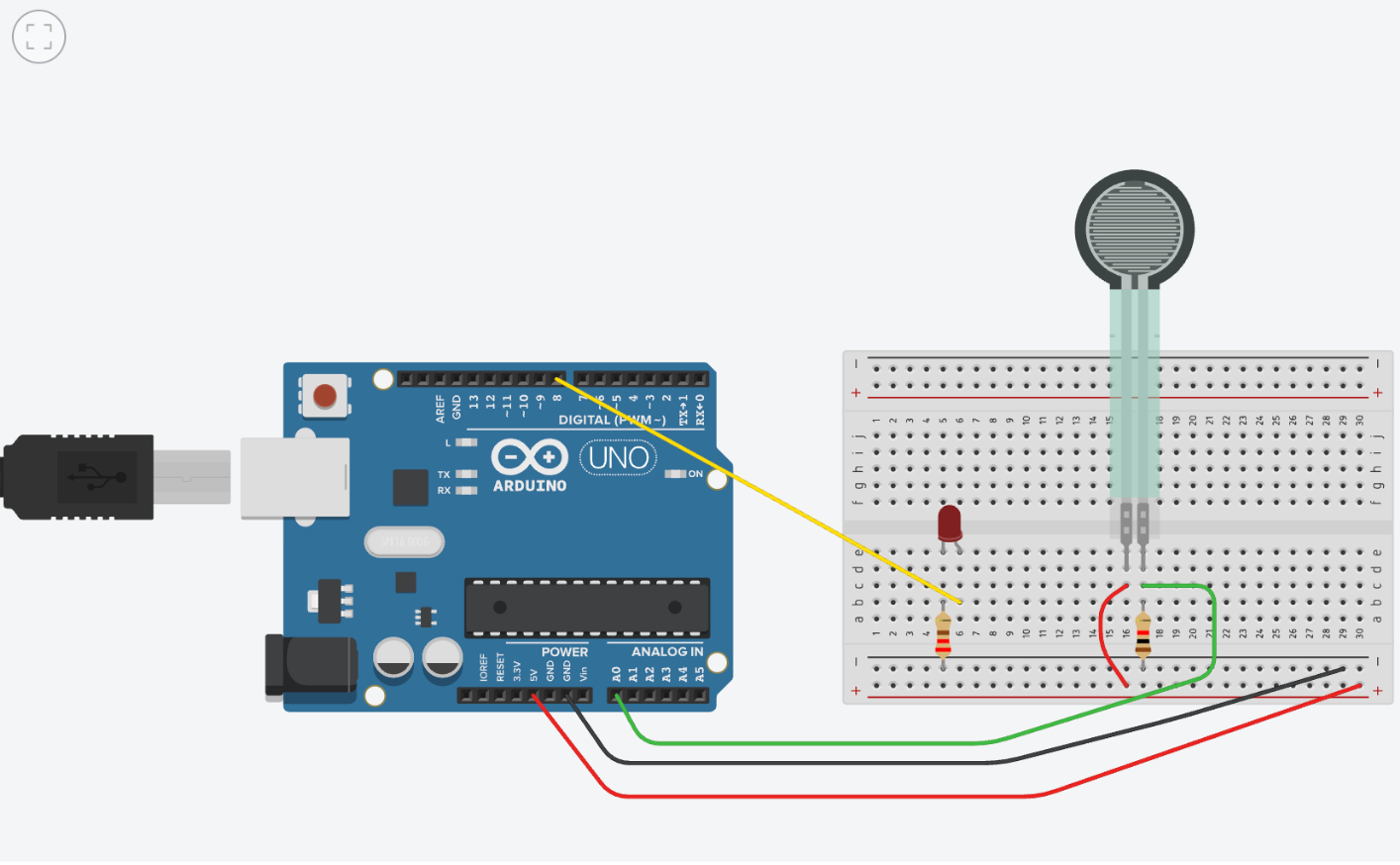 Monday: I completed part two of the Arduino workshop with the other undergraduates, led by Mark. We learned how to implement a voltage divider through simulation via TinkerCAD and on a physical breadboard. By using a force sensing resistor and LED light, we were able to program the Arduino to quantify how much force was being applied to the force sensing resistor. This mechanism relied on piezoresistivity, the principle that force and resistivity are related. In the case of an FSR, they have an inverse relationship. Afterwards I familiarized myself with the basic anatomy of an OpenRB-150 microcontroller, essentially a smaller version of the Arduino used in the workshop. Being able to program this microcontroller will prove useful when manually altering the torque produced by the Dynamixel motors we plan to use when testing the Gecko Lasso prototype.