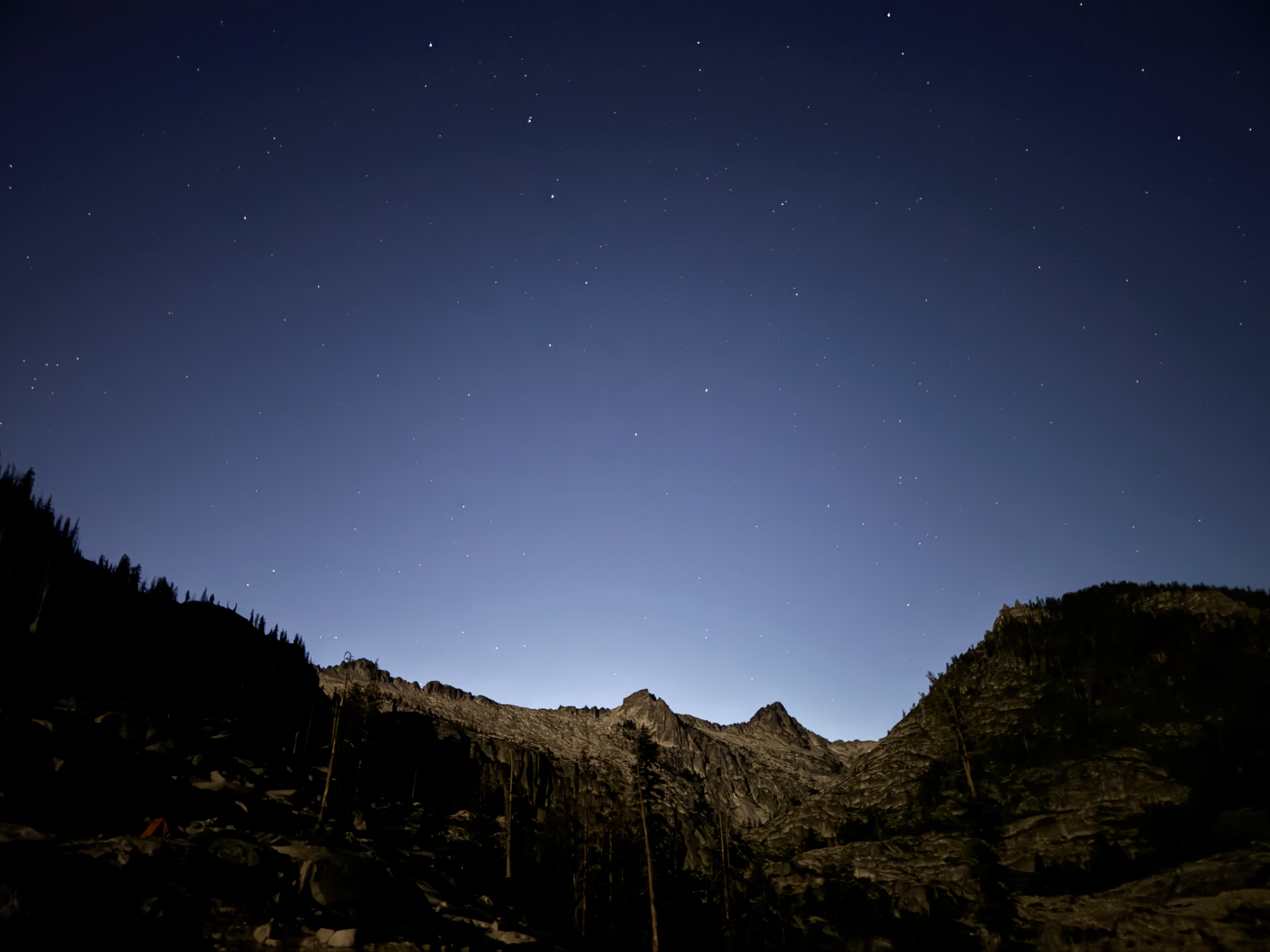 Sunday: EmJ, Mark, and I completed and submitted our written work early this morning, and are now completely ready to embark on the annual BDML Backpacking trip! This year the destination is the Trinity Alps in Northern California, more specifically Canyon Creek (known for its beautiful scenery). This is a new experience for me, as I have never camped as long as 4 nights and I have been preparing myself. The drive took about 6 hours, and we arrived at the trail head at about 2:30pm which was a bit later than the other carpool groups. We hiked about 3 miles out of the 8 it will take to reach our final destination, the Canyon Creek lake and decided to set up camp for the night.
